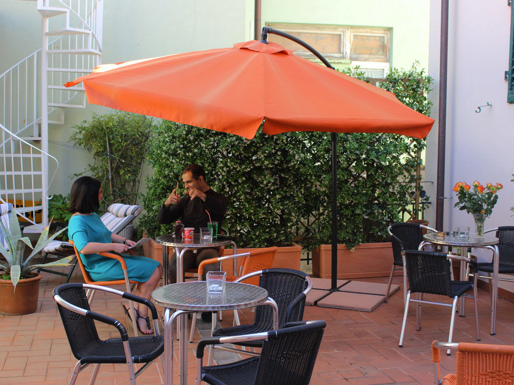 Savor a pleasant moment of relaxation on our outdoor terrace. Arranged on two levels, this private space, for the exclusive use of guests, is perfect for spending a few moments in tranquility. Here you can enjoy beautiful sunny days, sheltering in the shade of the parasols during the hottest hours, or quiet evenings after a long day at the spa or around Tuscany.